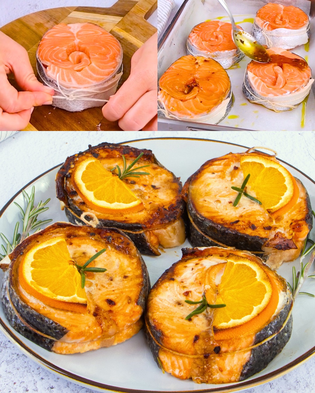 SKŁADNIKI 4 cotolette di salmone 1/2 arancia (succo) 10 g (1/2 cucchiaio) miele 35 g (2 cucchiai) salsa di soia Scaglie di peperoncino Olio d’oliva Fette d’arancia Rosmarino   Na salsę: 1 arancia 110 ml (1/2 szklanki) wody 8 g (1/2 cucchiaio) amido z kukurydzy 25 g burro Rosmarino 6 g (1/2 cucchiaio) cukinii Sale … Read more