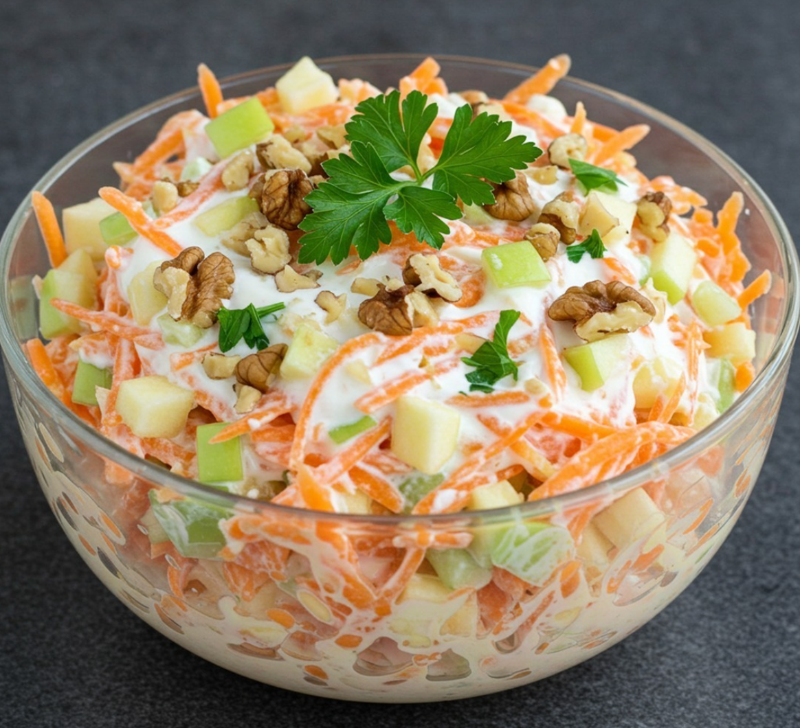 Ensalada de zanahoria con manzana, nueces yogur