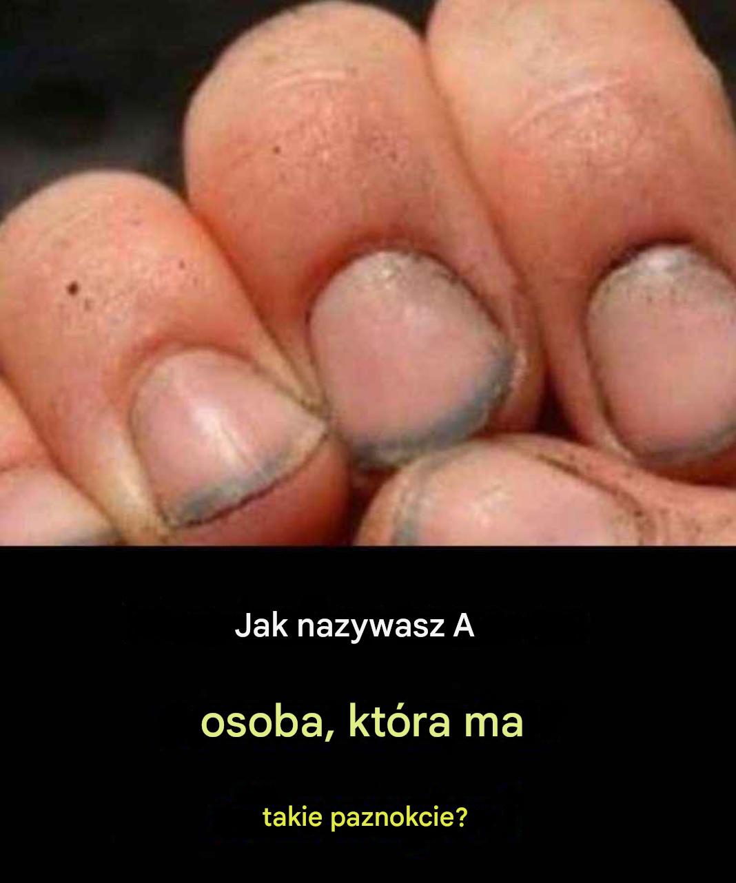 Zdjęcie przedstawia dłoń z paznokciami poczerniałymi od brudu i brzegami pokrytymi brudem. Często pojawiające się pytanie jest proste i wymowne: