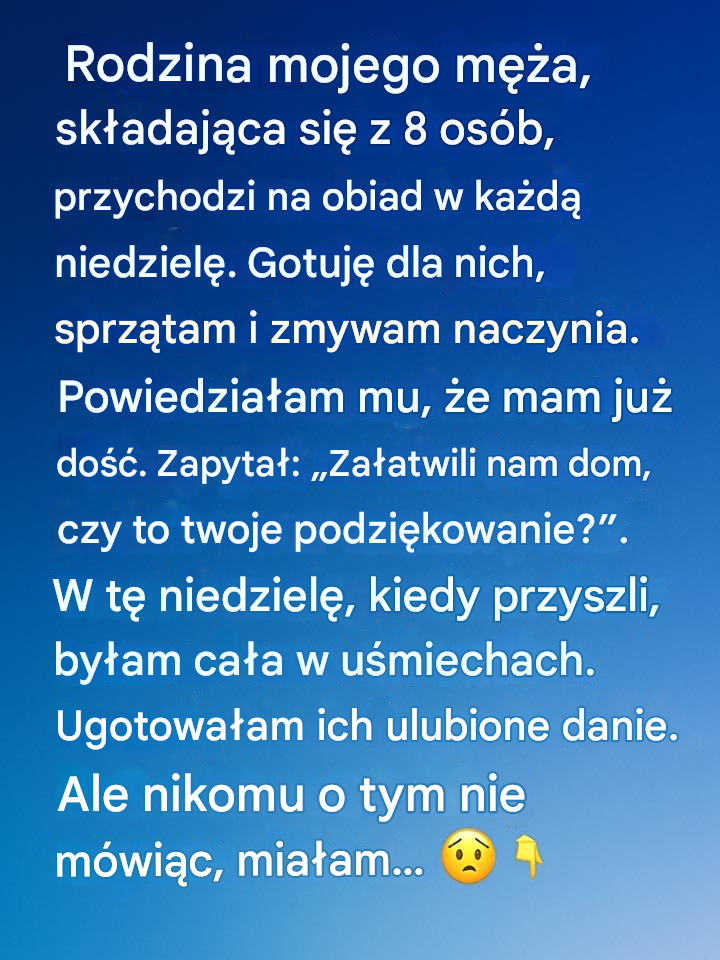 Kiedy mój mąż pochwalił posiłek, uśmiechnęłam się i powiedziałam: „Cieszę się, że ci smakowało”. Później, kiedy dowiedział się, że nic nie gotowałam, wyglądał na oszołomionego.