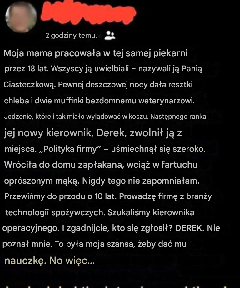 Mama wróciła tego dnia do domu zapłakana, z twarzą szarą od zmęczenia i fartuchem wciąż oprószonym mąką.