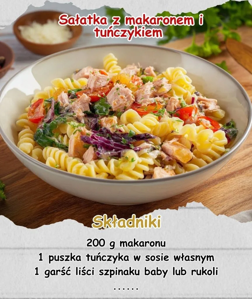 - 200 g makaronu (np. świderki, penne, kokardki – może być Lubella, Barilla, Makarony Polskie)