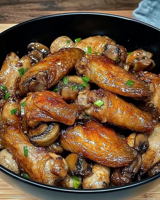 To sycące danie łączy chrupiące, soczyste skrzydełka kurczaka z delikatnymi, pikantnymi grzybami w bogatym i aromatycznym sosie. Idealne jako pocieszające danie główne lub przystawka do dzielenia się, to przysmak dla tłumów pełen dobroci umami.