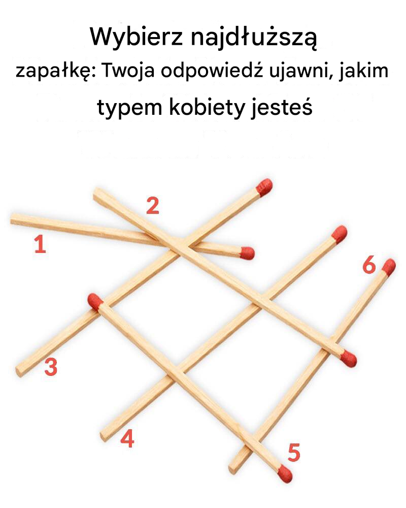 Na pierwszy rzut oka wydaje się to prostą łamigłówką wizualną – sześć rozrzuconych i nachodzących na siebie zapałek, z których każda oznaczona jest numerem od 1 do 6. Zadanie jest proste: wybierz najdłuższą.
