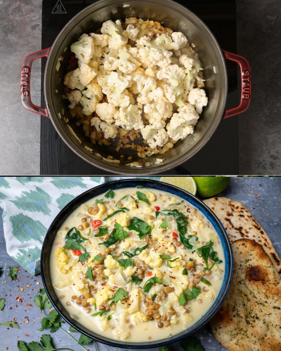 To sopa de kalafior y lentejas es la comida confortante par Excellence, Perfecta para cualquier epoca del año. Pełna ciepłych przypraw, różyczek kalafiora i soczewicy en un caldo picante, to zupa, której powinieneś spróbować, jeśli masz ochotę na zdrowe i pyszne jedzenie.